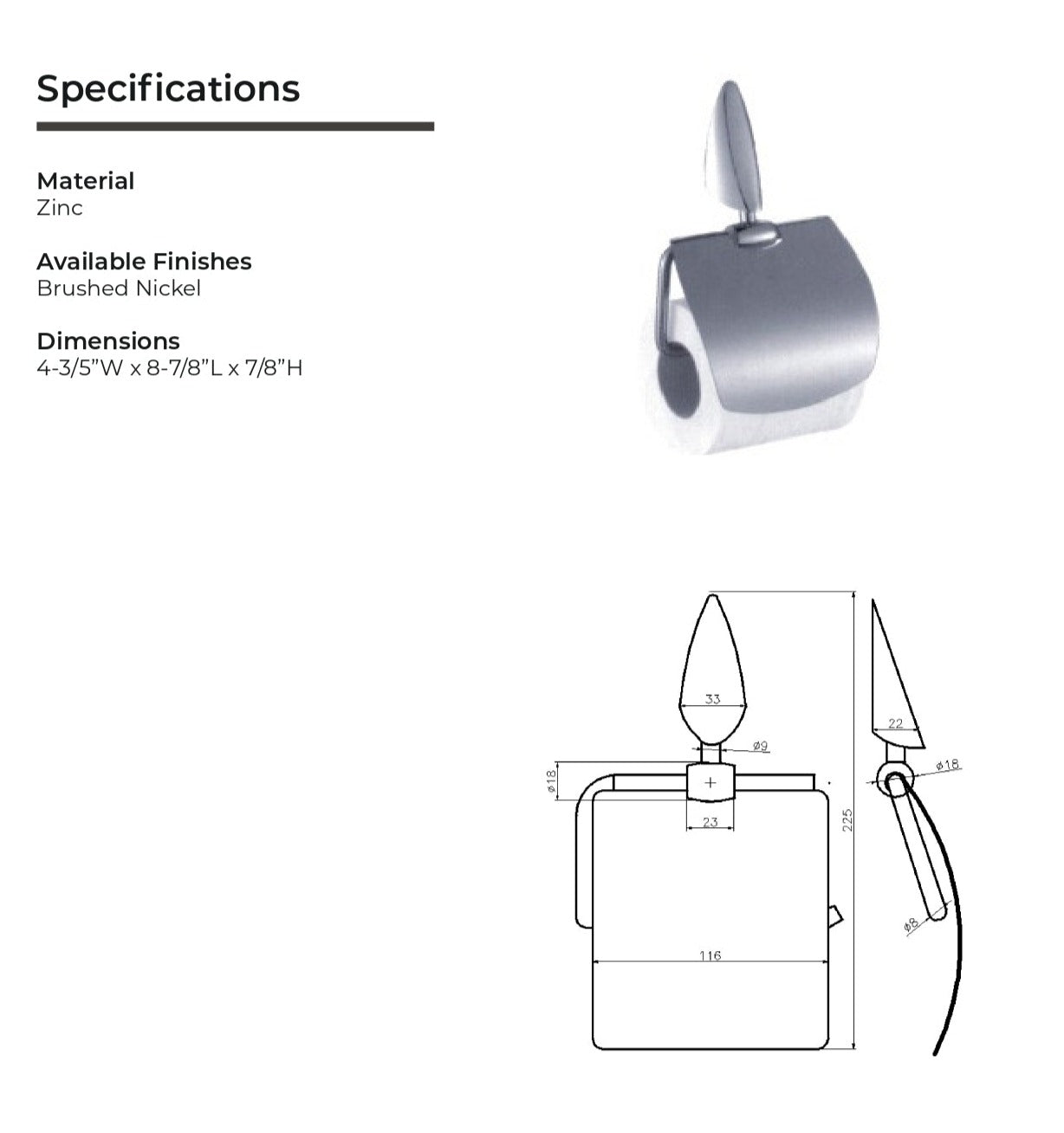 Available Finishes : Brushed Nickel
