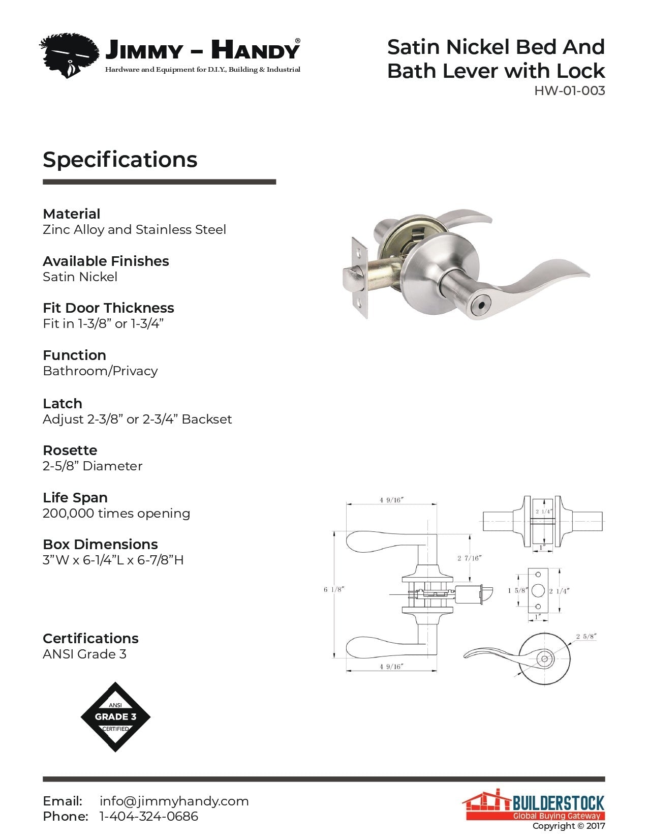Fit Door Thickness : Fit in 1-3/8” or 1-3/4”